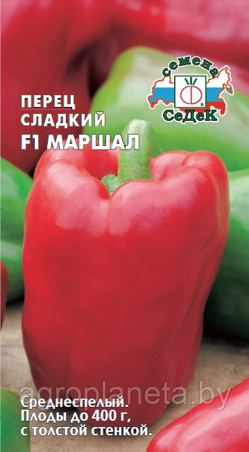 Среднеспелый (120-130 дней) гибрид, самый крупноплодный из перцев, для выращивания в открытом грунте и пленочных теплицах. Растение высотой 70-80 см, открытого типа, формирует одновременно 7-10 плодов. Плоды крупные, кубовидно-призмовидные, в технической спелости – темно-зеленые, в биологической – красные, длиной 16-20 см, массой 300-400 г, сочные, сладкие. Толщина стенки 0,9-1,0 см. Урожайность 8,0-8,5 кг/кв.м. Ценность гибрида: устойчивость к комплексу болезней, стрессоустойчивость, высокие вкусовые качества плодов, транспортабельность, пригодность к хранению. Рекомендуется для рынка свежей продукции и переработки.